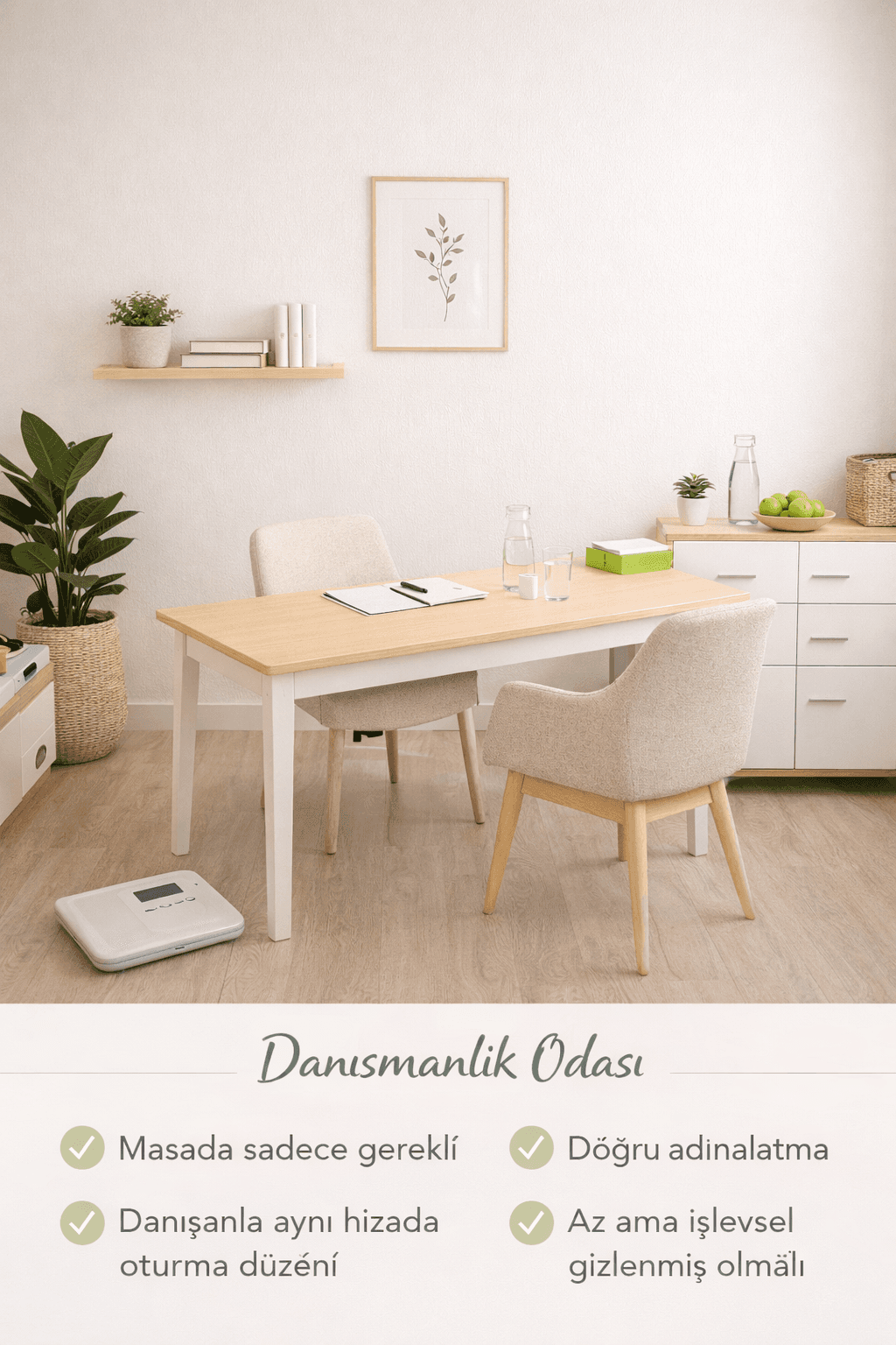 Diyetisyen kliniği dekorasyonu; danışanın kliniğe girdiği andan itibaren “burada düzen var, ben önemseniyorum” hissini veren mekânsal kurgudur.